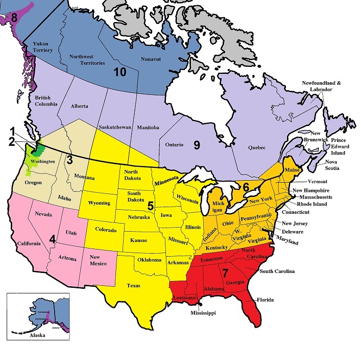 The colors and numbers on the map represent different Zones, and are mostly an internal guide to help us determine our policies and pricing. We operate a little differently in each of these Zones depending on a variety of factors such as current market trends, seasonal influences, weather, geography and road conditions, state and provincial laws, and other considerations. When our customers call for quotes or other inquiries, a more relevant explanation is provided.