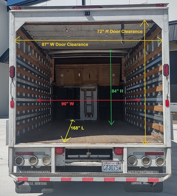 At 14ft, the cargo bay has just over 710 cubic feet of space and can safely handle up to 6 pallets/skids (or 12 stackable pallets), up to a maximum payload of 4,000 lbs.